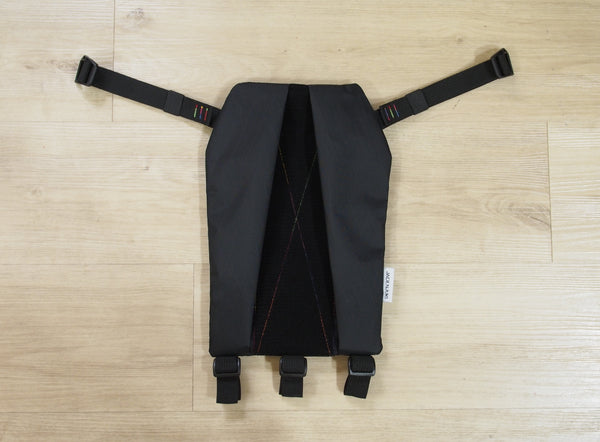 This design is inspired by the original Mystery Ranch Stick-It, with a diagonally-oriented YKK aqua-guard zipper at the back to achieve the following benefits: